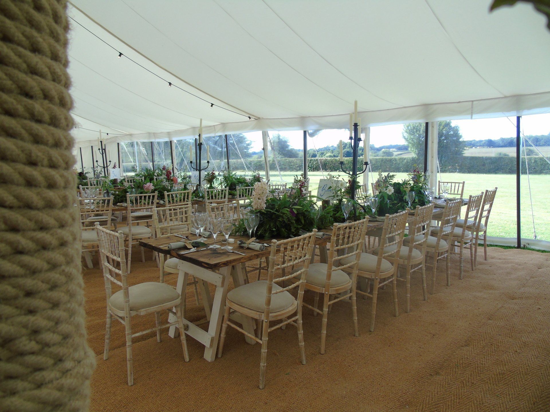 Our Traditional or Petal Marquees are best to capture an effortless and natural look for your wedding. Combine the perfect marquee with our natural tables to create a clean and simple style.